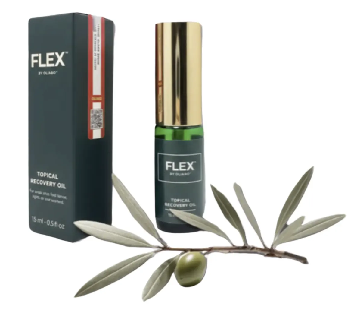 FLEX is an olive oil-based topical recovery oil designed for everyday use on areas of muscle and joint tension.